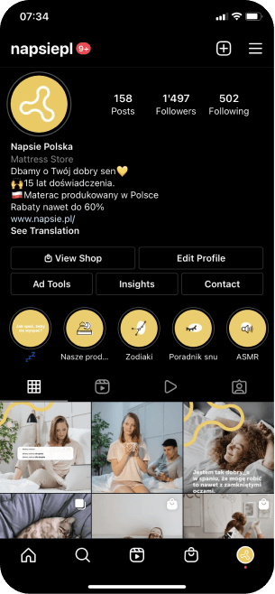Napsie is a new brand offering a wide variety of comfortable bedding products such as mattresses and sleeping accessories (duvets, pillows and bedding). Our collaboration began with the brand's entry into the Polish market. We focused on a range of services to make sure of its best possible kick-off. Strategy creation, introducing social media profiles (Instagram and Facebook), setting up Facebook Ads, and regular influencer marketing... There has been a clear need for a strong set of actions! Winning hearts in Poland is a ,good start, but becoming a popular global mattress manufacturer is a colossal task. is a challenging task.